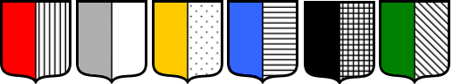 Les couleurs sont divisées en deux catégories : les émaux (gueules, azur, sable et sinople)et les métaux (argent et or).