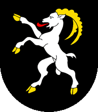 - le deuxième : d'argent à deux cormes de bouquetin posées en fasce, l'une sur l'autre, à la champagne vivrée de sinople.