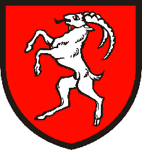Bouquetin de sable saillant, langué et vilené de gueules , allumé du champ :