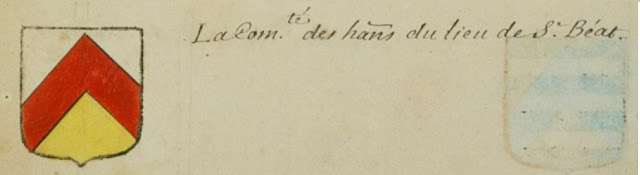 Les fragments de manuscrits proviennent toujours du Volume II. Pour enrichir l'étude, j'ai mis en bonus l'extrait équivalent (quand il existe) dans l'Armorial Général de France* (1696-1711), établi par Charles-René d'Hozier, et comme auparavant, j'ai placé le blason actuel en-dessous, pour comparer les différences ou au contraire la constance des figures dans le temps.