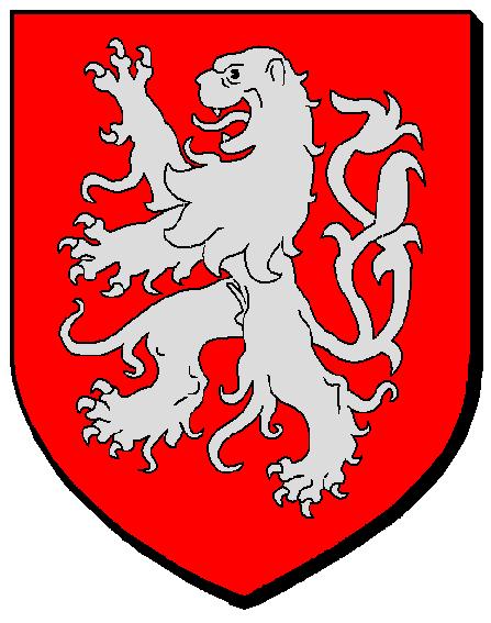 Le blason " De gueules au lion d'argent à la queue fourchée et passée en sautoir" est celui de la maison de Montfort. Simon de Montfort, commandant l'armée des Croisés qui battit le Comte de Toulouse Raymond VI et ses alliés, dont Bernard IV, Comte de Comminges, à la bataille de Muret le 12 septembre 1213, lors de la Croisade contre les Albigeois. Depuis 1212, Simon de Montfort occupait le Comminges, mais le concile de Latran IV (1215) rend son comté à Bernard en 1216. Toutefois en compensation, il est obligé de marier sa fille Pétronille avec Guy de Montfort, le fils cadet de Simon de Montfort.