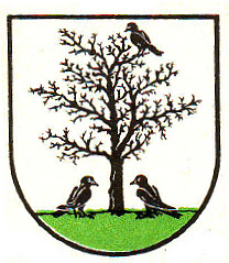 loubets (=jeunes loups) d’argent passant, l’un au-dessus de l’autre, au 2e d’argent à trois corneilles de sables rangées en pal.