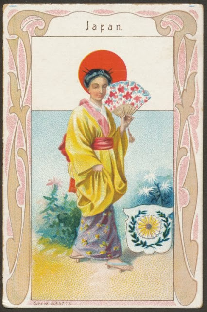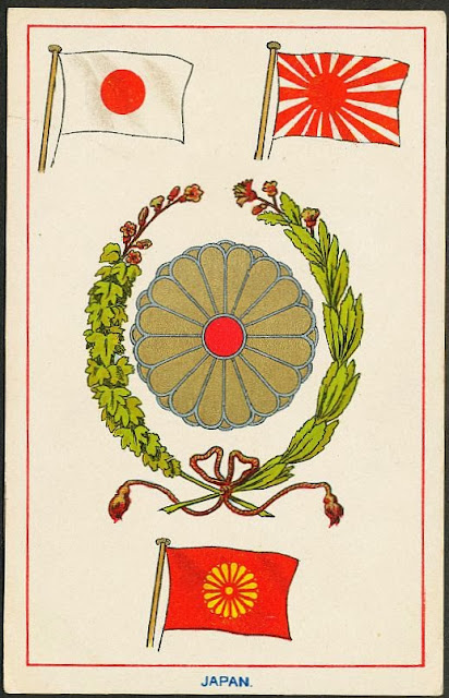 | carte de collection (EFA) début du XXe siècle montrant les principaux emblèmes nationaux du Japon |
