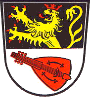 | commune d'Oberbronn (Bas-Rhin) Blason n°1 : "D'azur au lion d'or, à la bande de gueules chargée de trois coquilles d'argent brochant sur le tout". |
