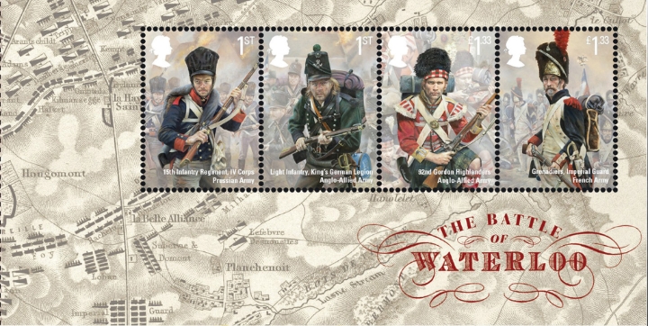 | bloc-feuillet philatélique émis le 18 juin 2015 par le Royaume-Uni pour le bicentenaire de la bataille de Waterloo |