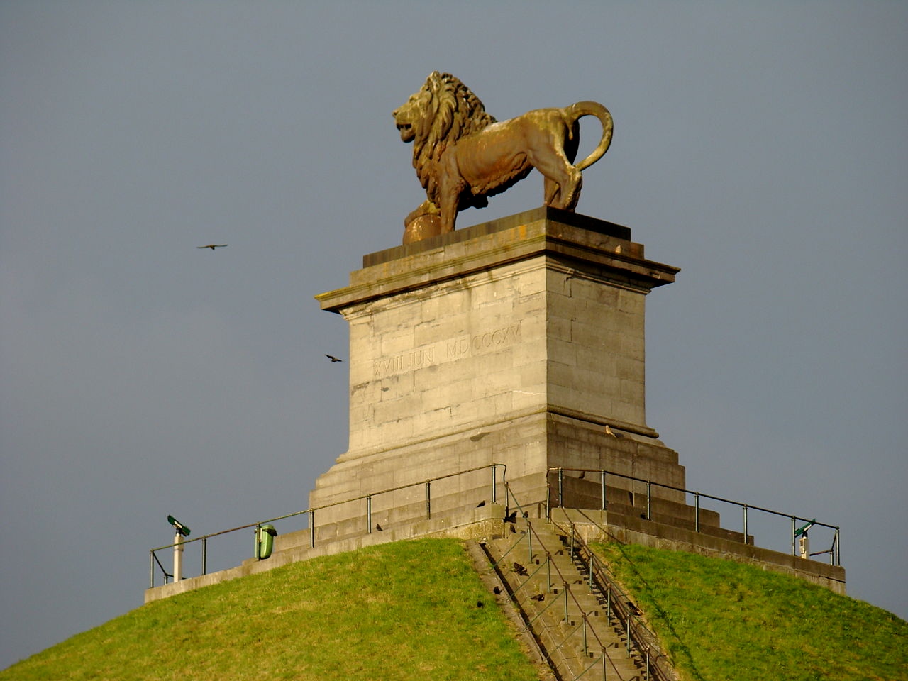 | la version originale de la Butte du Lion , construite à l'endroit symbolisant le lieu de la bataille du 18 juin 1815. |